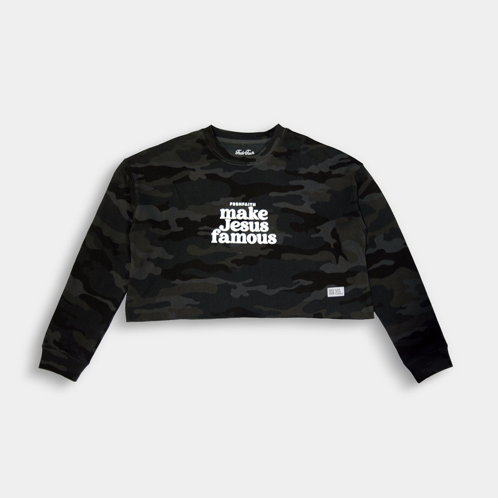 Blk Camo Crop Crewneck