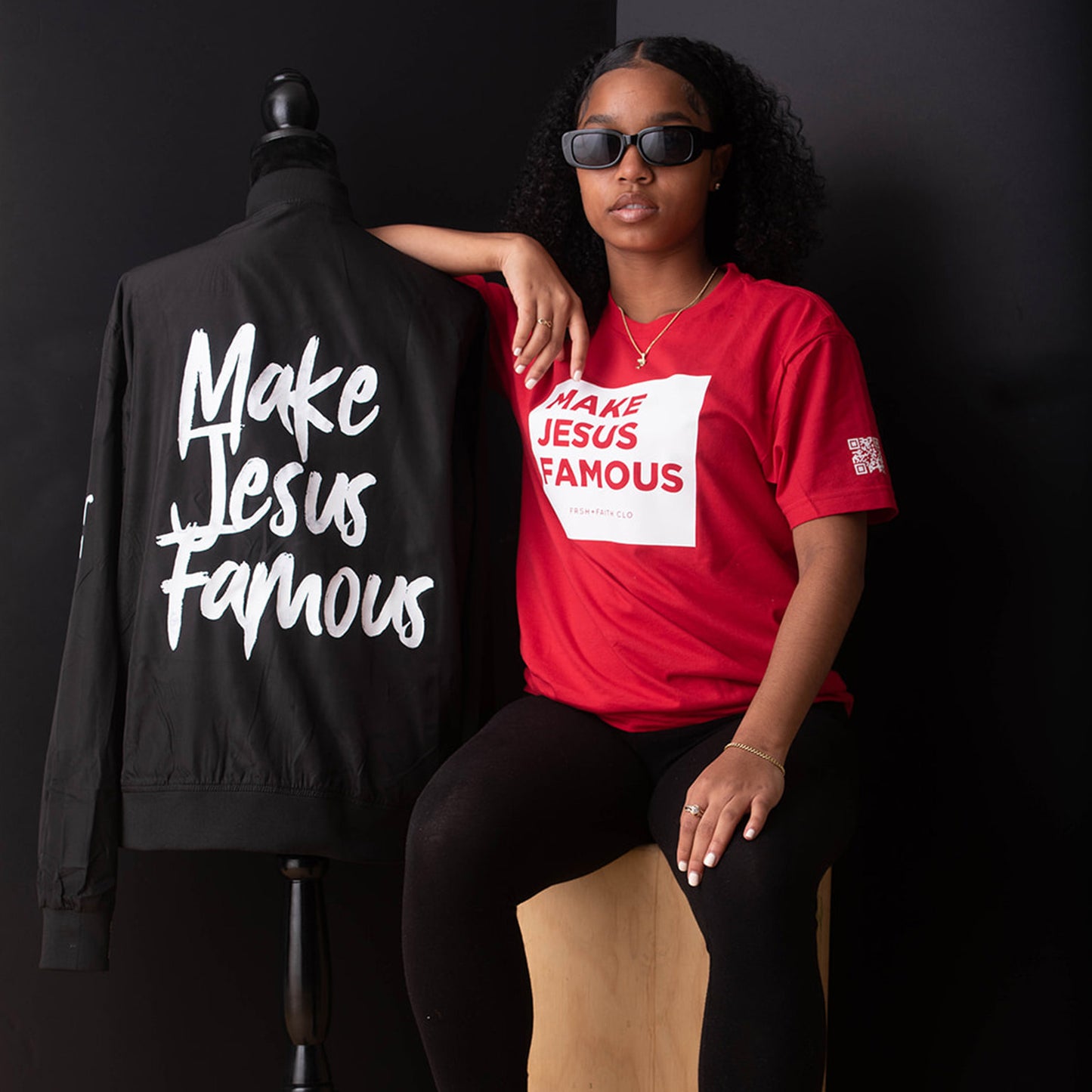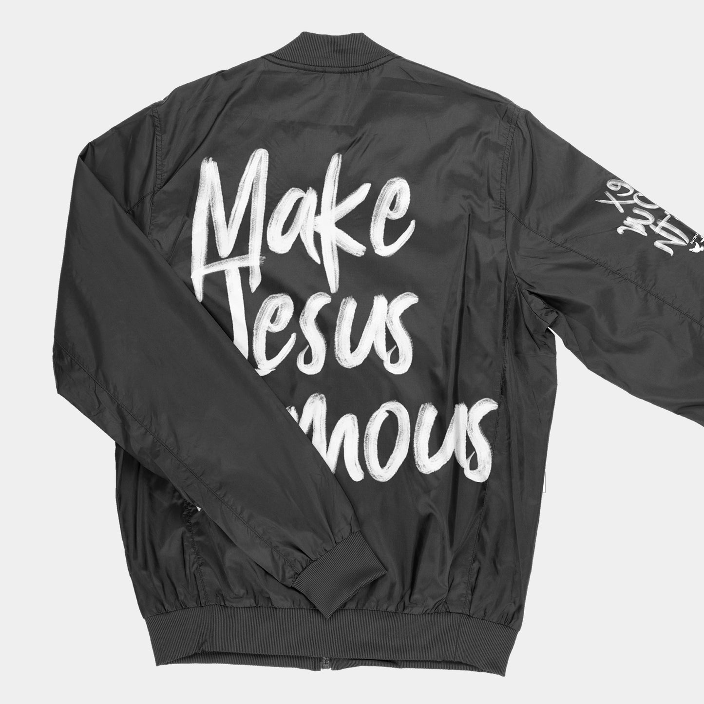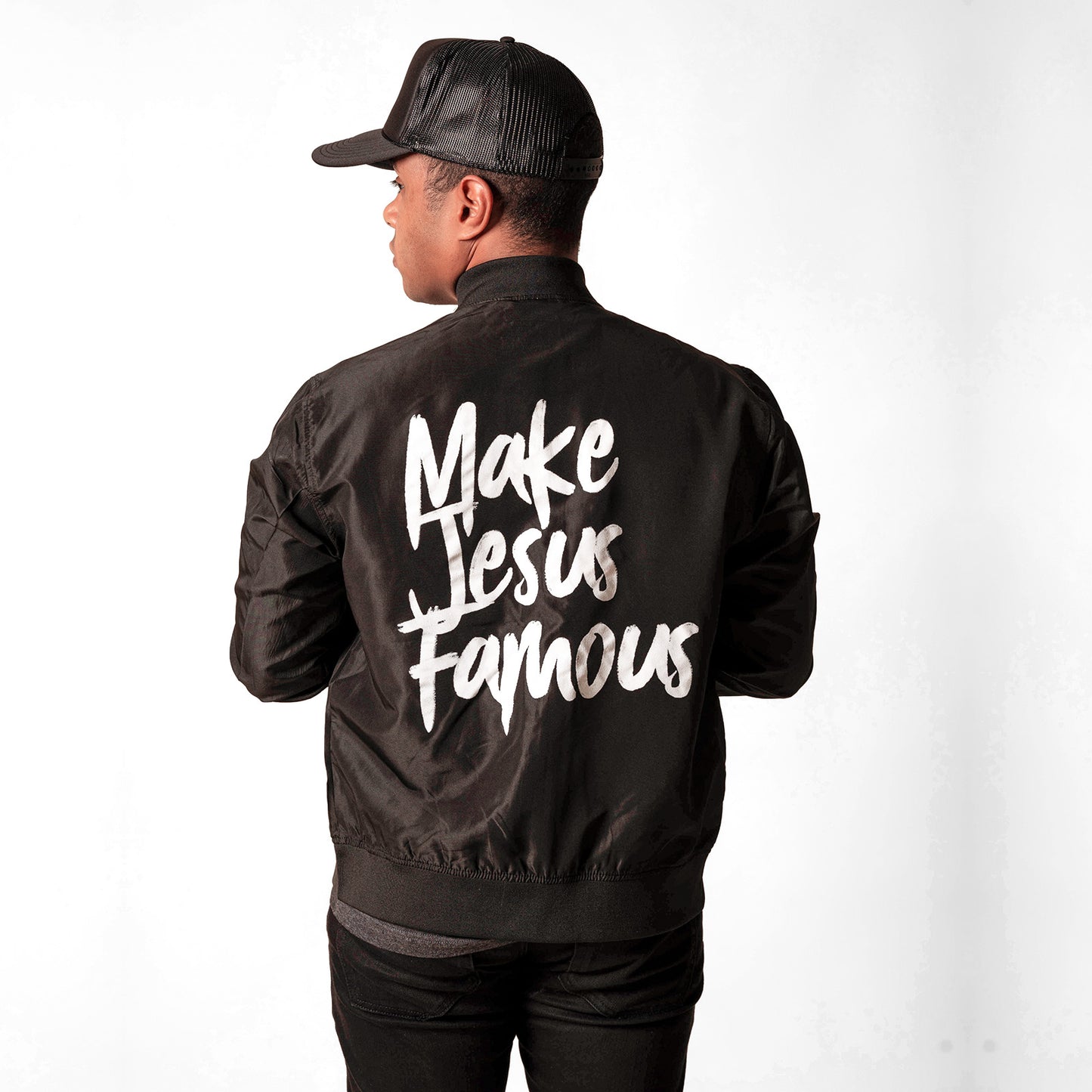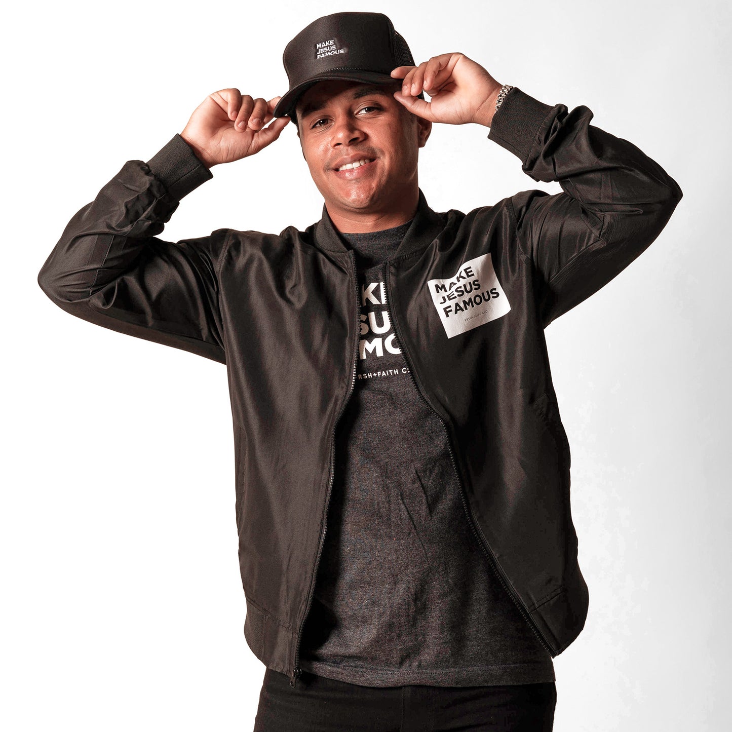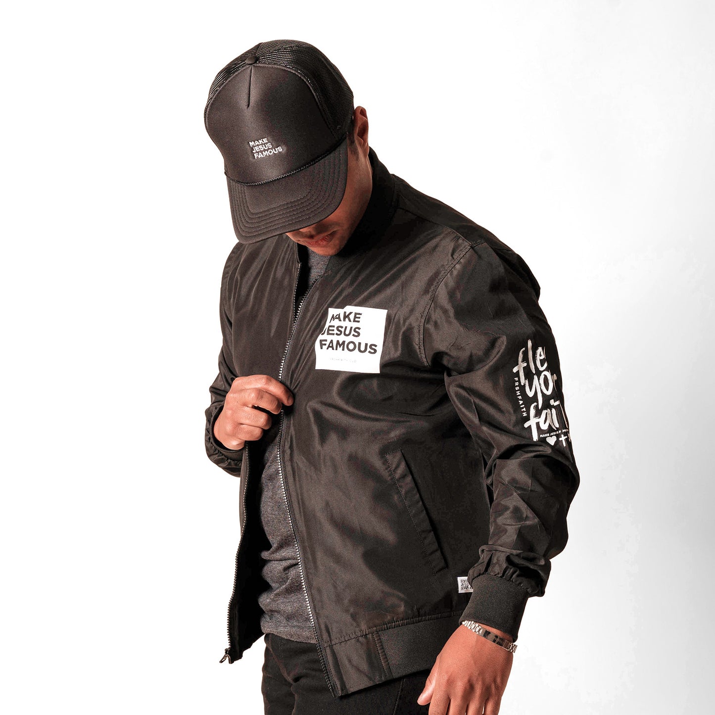 The Black Bomber Jacket is a must-add to your FrshFaith lineup. Sporting the bold MJF script on the back, alongside the classic MJF squared logo and the "Flex your faith" arm design, it's all about embracing and showcasing your love for Christ Jesus. You know you gotta have it!