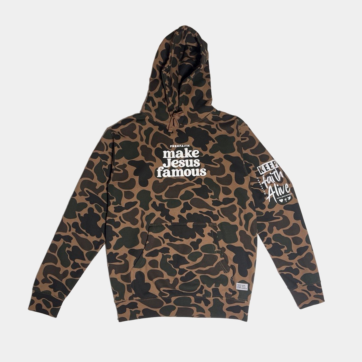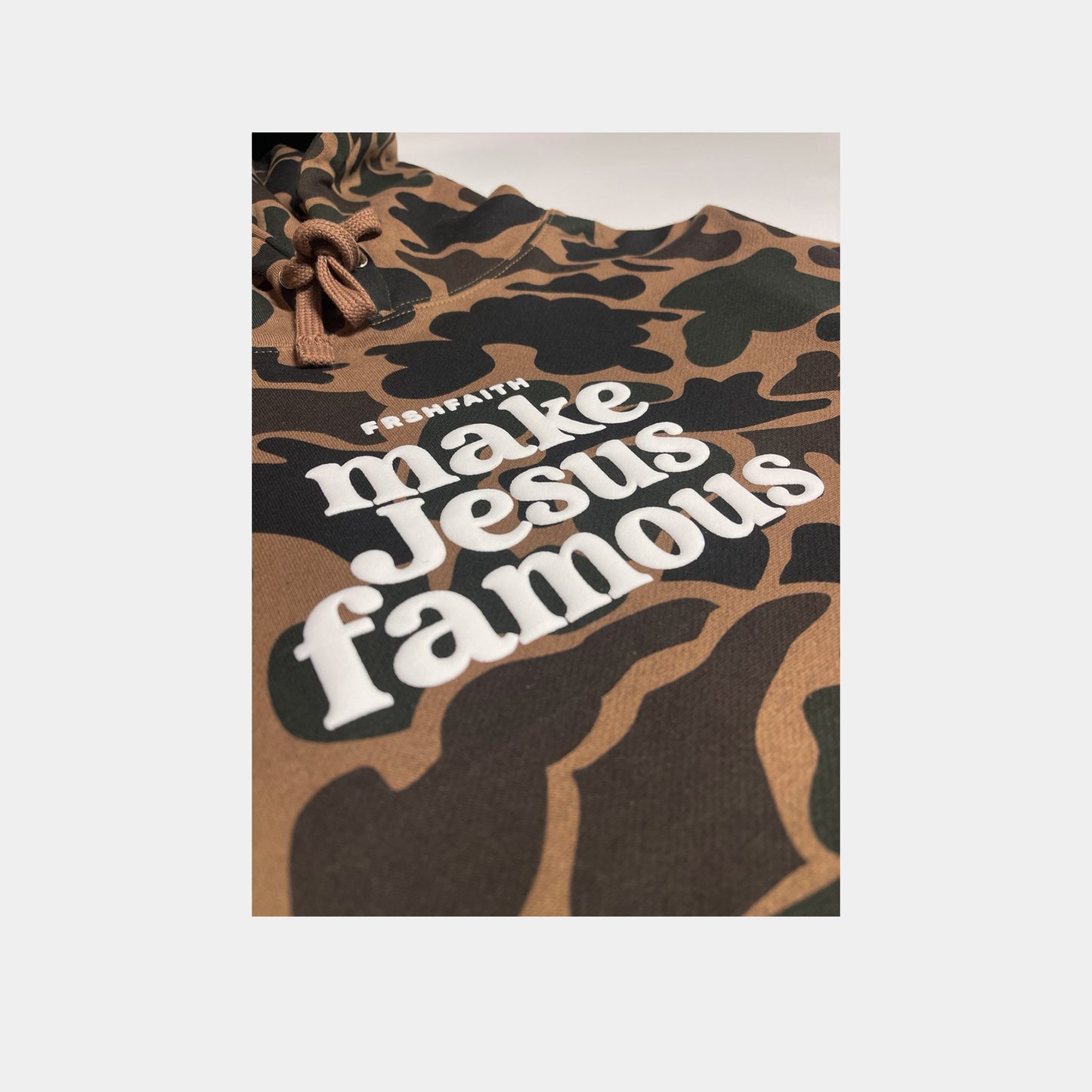 The MJF Duck Camo Hoodie is where streetwear meets Kingdom purpose. Crafted from high-quality fabric with our signature puff print “Make Jesus Famous” message front and center, this hoodie is more than apparel—it’s a statement of belief.