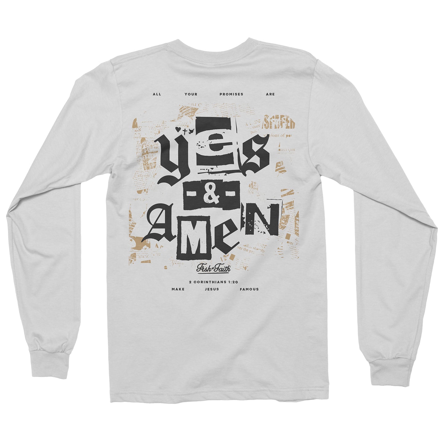 A gentle reminder: Believe in God's word, for His promises are steadfast – always "Yes" and "Amen!" 🙌🏾 Embrace the comfort of our UNISEX White long-sleeve, a reminder that all of God's promises find fulfillment in Christ. As 2 Corinthians 1:20 affirms, through Him, our "Amen" resounds to God's glory. 🌟 #FaithfulPromises #BelieveInHisWord